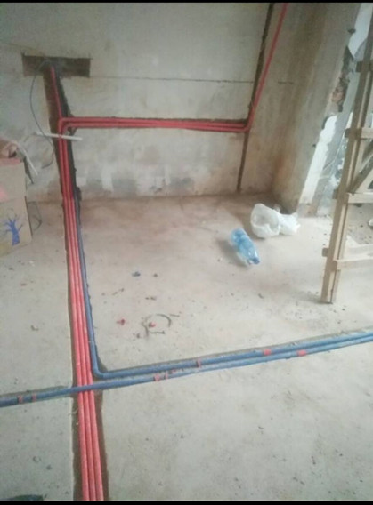 裝修師傅挖好線槽白蟻預防工作人員對墻體1.5米以下進行噴灑白蟻預防藥水,